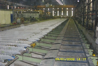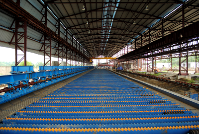 • Automatic rake type cooling bed which transfers the material by one pitch for every rake movement. These are provided with twin channel bar delivery system or run in table with apron type diverters. The bed is provided with bar aligning arrangement.
